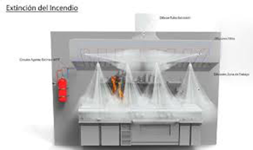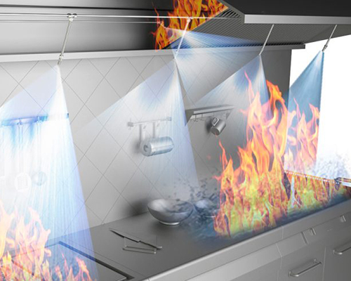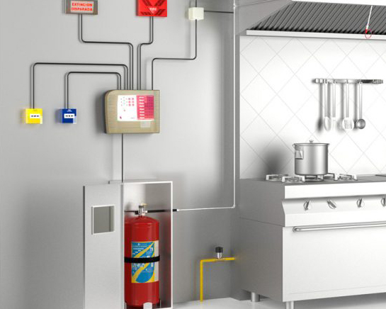 Sistema automático. Asegura la protección de la cocina sin necesidad de personal para la activación del sistema. Se garantiza que el sistema este activo durante todo el tiempo. Podemos combinar la instalación con extinción automática y activado a través de un capilar térmico que abre la vávula de disparo, o ampliar la instalación con detectores y una central que dé el aviso de alarma y active una sirena óptico-acústica para el aviso y alertar a personas que puedan estar presentes en el momento del conato.